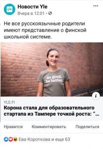 Финская газета «Keskisuomalainen» опубликовала интервью с Натальей Громовой в своем бумажном издании, а так же на сайте с платной подпиской. В интервью Наталья рассказывает о работе своей компании, о том, почему среди иностранных педагогов есть спрос на финское образование, что чаще всего находят интересным, что заимствуют и применяют, а что перенести нельзя. Так же Наталья рассказала об опыте организации стажировок и планах на будущее!